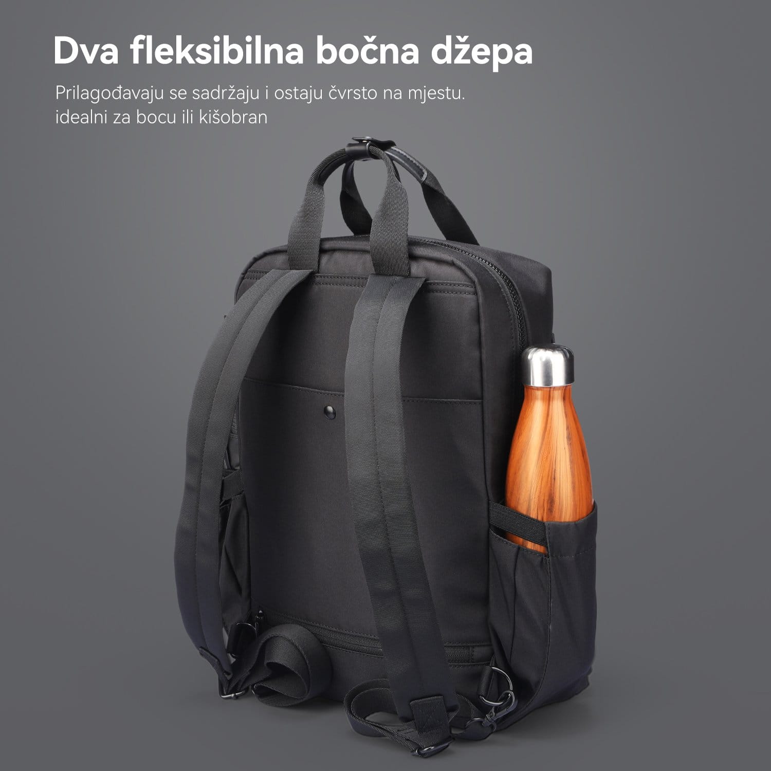 • Bočni džepovi prilagodljivi za flašu ili kišobran