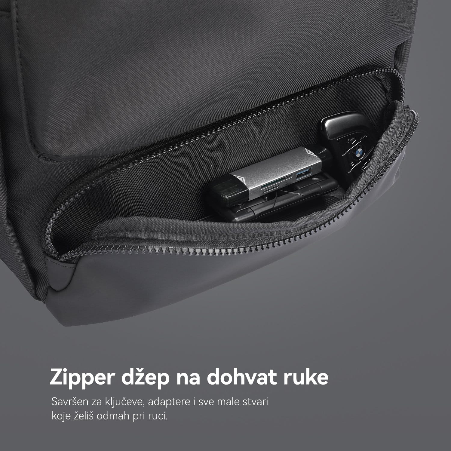Dovoljno prostora za laptop do 15.6”, tablet i sve dnevne sitnice.