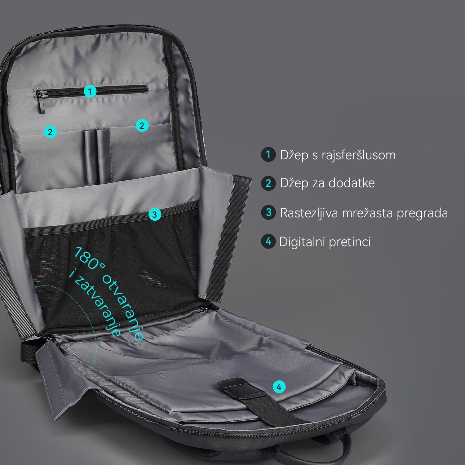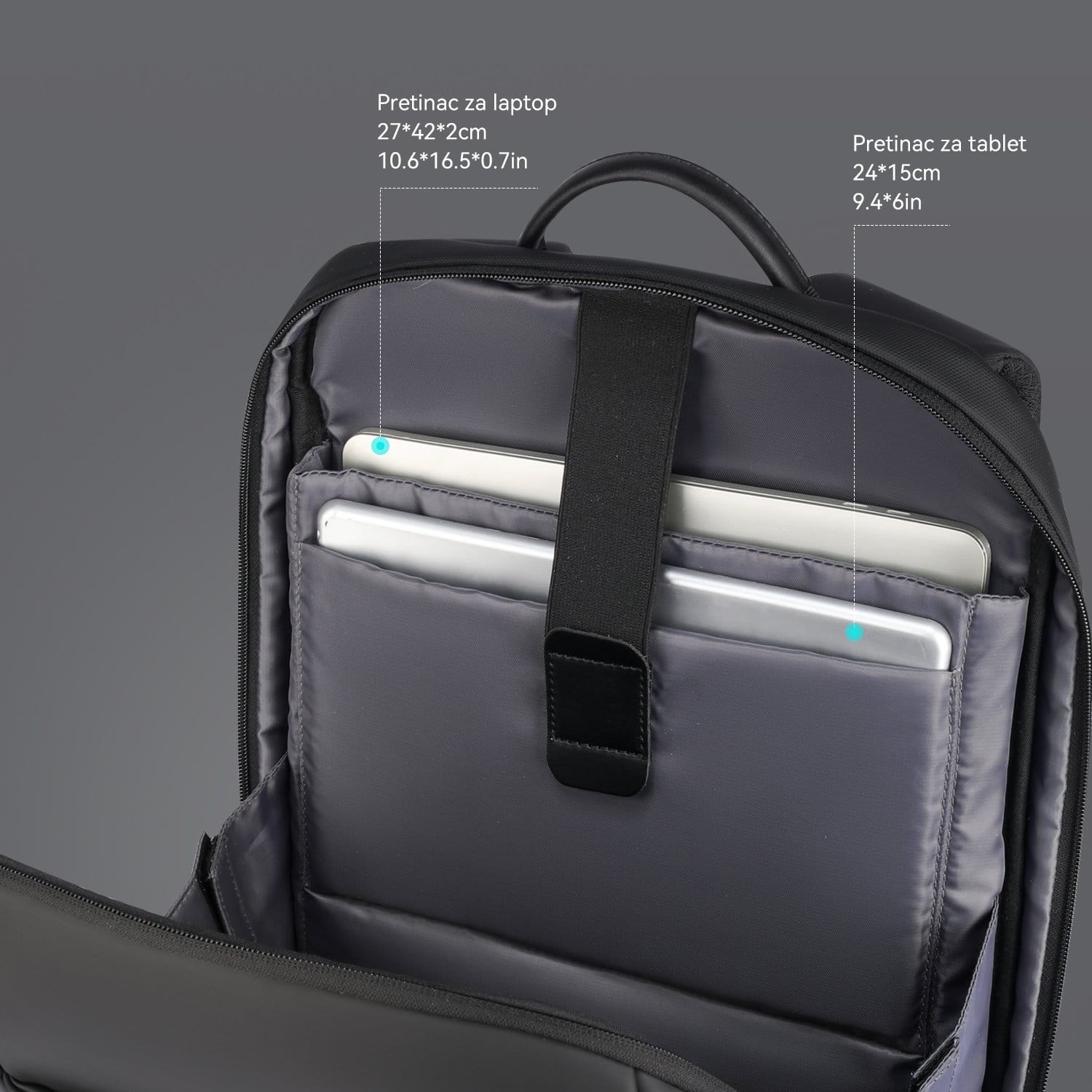 • Odvojena pregrada za tablet